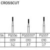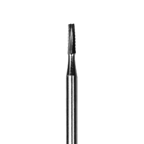 The DynaCut Friction Grip Surgical Carbide Bur 556 features a straight fissure crosscut shape with parallel lines that move diagonally to the head. This is ideal for periphery contouring.