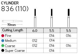 The Galil Multi Use Diamond Bur Cylinder 836 is made from stainless steel shanks, allowing it to withstand any type of procedure. The diamonds also provide reliable cutting power.