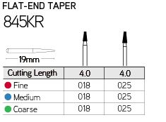 With a flat end taper, the Galil Multi Use Diamond Bur Flat End Taper 845KR is specially crafted to tackle the difficulties of bridge and crown preparation. It has a length of 19mm, and you can choose from fine, medium, and coarse options to match the procedure.