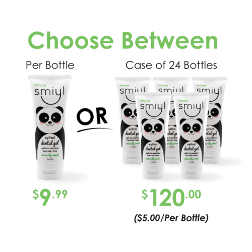 Smiyl Xylitol Dental Gel is a safe, natural alternative to traditional toothpaste that helps prevent tooth decay and plaque. It’s ideal for kids with or without teeth. Apply it on their gums or tongues, pacifiers, sippy cups, bottles, and more. All-natural goodness for the whole family!